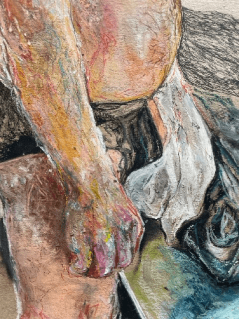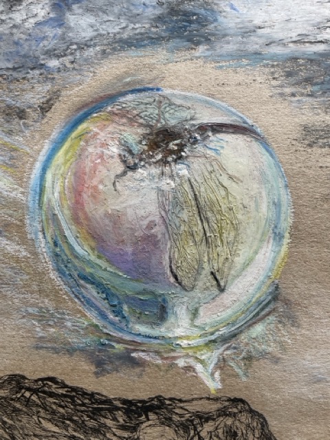 Medium: Oil pastel and pen on card